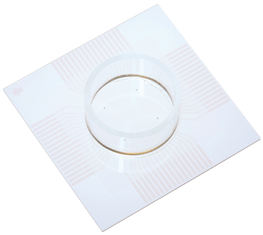 The MED Probe has multiple microelectrodes embedded in the center of a transparent glass plate. The surrounding glass (or plastic) cylinder makes the MED Probe a self-contained recording chamber.