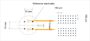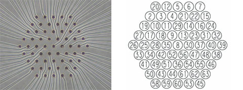 The standard MED Probe has 64 microelectrodes and is available with 2 types of (5 mm or 10 mm height) chamber height.