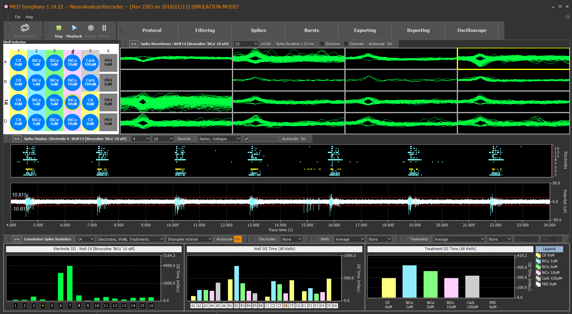 - Automated spike detection and subsequent spike and burst analysis.